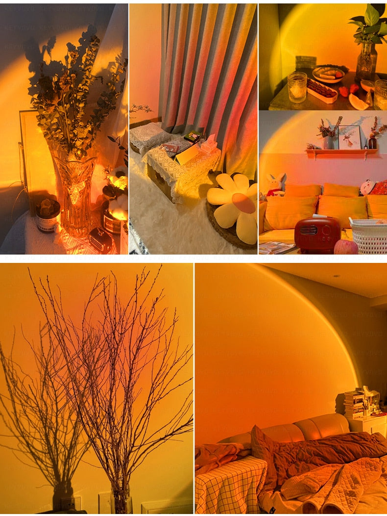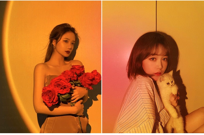 Sunset lamps are widely used in different environment. for example,Car atmosphere decoration, car styling, room atmosphere decoration, portrait photography, object photography, etc. Different colors are suitable for different scenes.